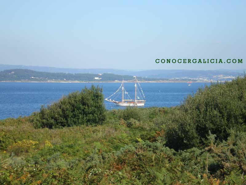 Está situada en la bocana de la ría de Arousa. A tan sólo 3 kilómetros de distancia de la parroquia de Aguiño- Ribeira.