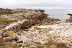 Unos dicen que esas piedras todavía tan bien dispuestas son los restos de un puerto que los fenicios construyeron en Aguiño para hacer escala en sus frecuentes viajes comerciales por nuestras costas en los siglos XII a VIII a. C.