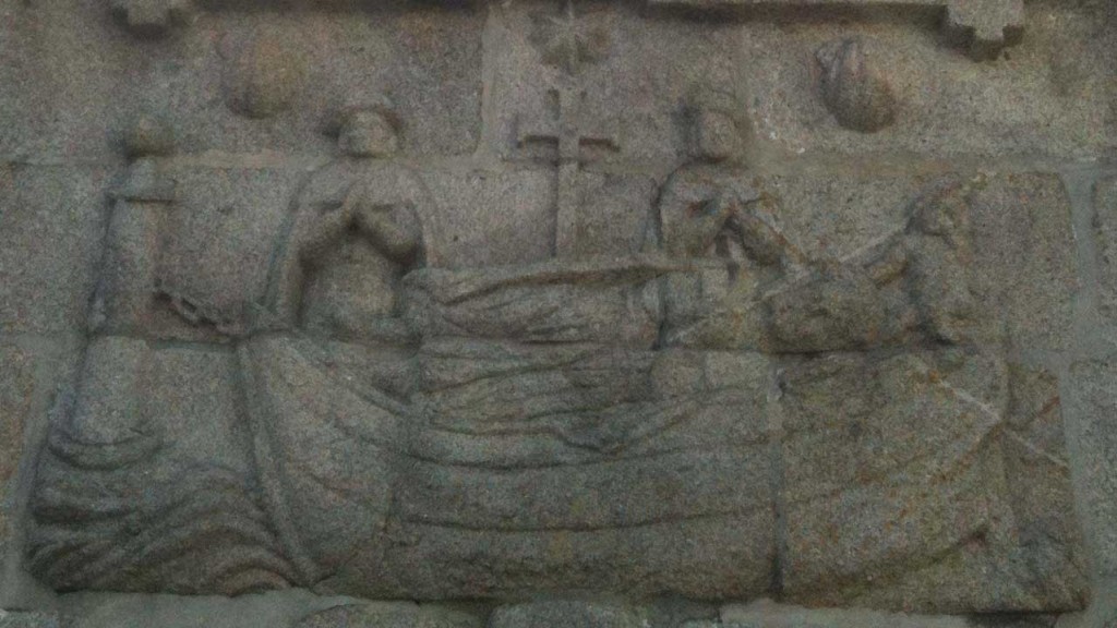 En ella también está representado el traslado del Apóstol Santiago en una barca de piedra, la cual está amarrada al Pedrón.