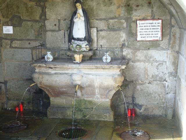 La virgen descansa sobre un altar del salén tres caños por los que mana el agua.